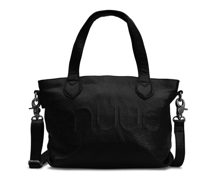 Laukun pehmeä nahka antaa sille modernin ilmeen, samalla kun etupuolelle huomaamattomasti painettu Muud-logo viimeistelee klassisen ulkonäön